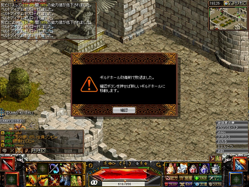 ランク1ホールになると倉庫とギルド商人の位置がわからなくなってしまうんだよね・・