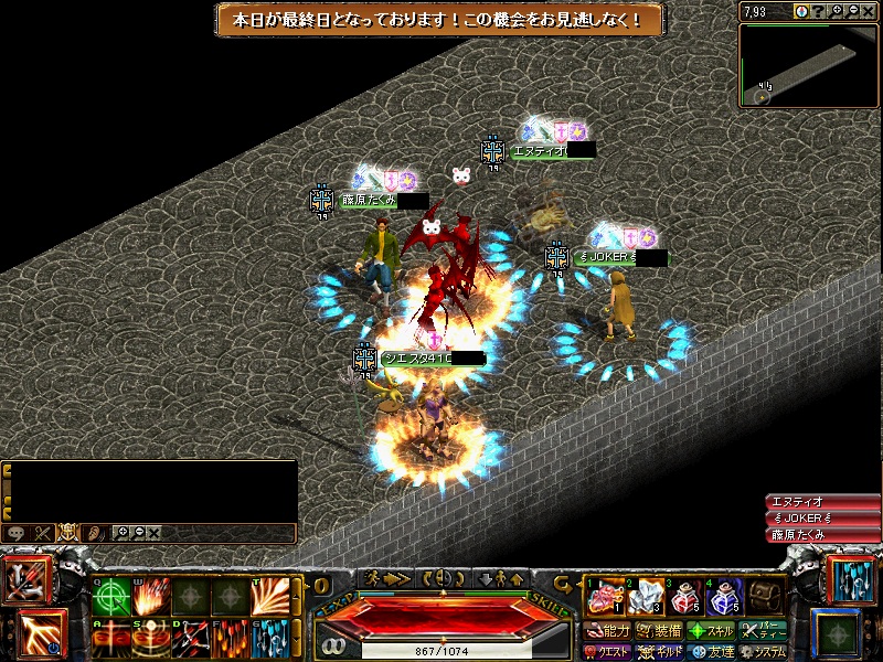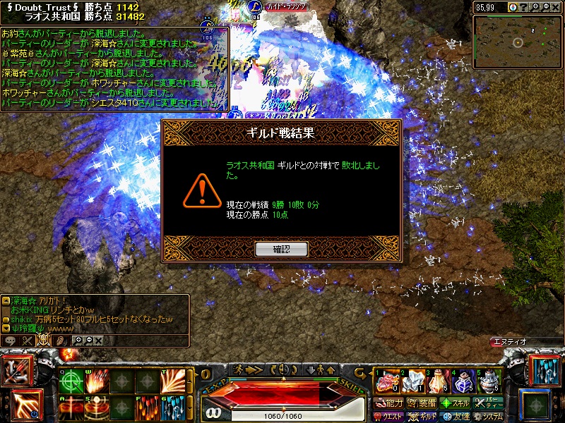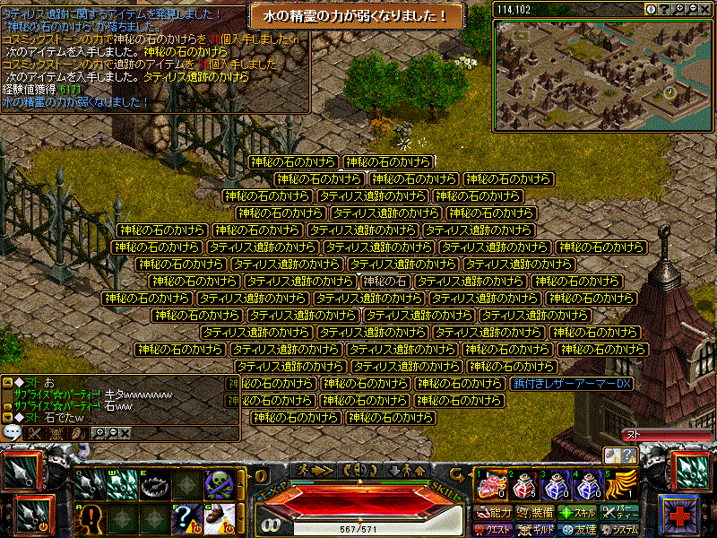 物資もコスミックで稼いできたし、準備もおk!XYLISHとの最後の守りになるのかなーと考えているともうすぐ23時!(攻城戦の開始時間) 事前に雨を打っておこうと、速度石と心臓を使い雨連打!・・・