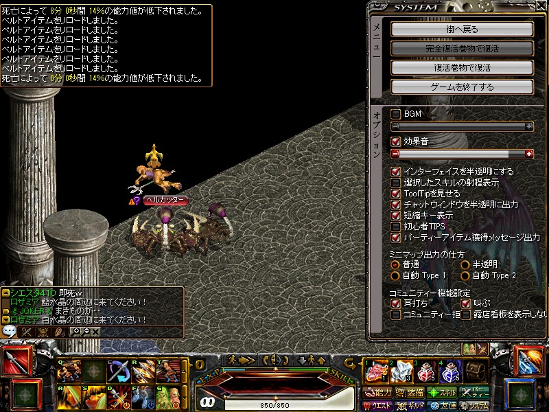 デスペナが残ったままなので尻尾で生き返らしてもらうことに・・・