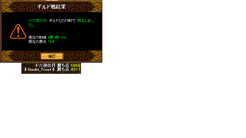 さて、こんにちわ!そうでないみなさんはおはようございます!今回のGvは十六夜の月とでした(; ・`д・´) ナ、ナンダッテー!! (`・д´・ ;)聞いた話によると十六夜の月からの人がダウトを立ち上げたとかなんとかということでしたので一方的な展開になるかと思いきや、ポイントは一度はこちらが勝ってたりとなかなかいい勝負でした!結果mかなりの僅差で楽しかったです☆-(ノ゚Д゚)八(゚Д゚ )ノ