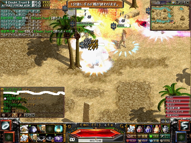 さすがにこのバインド痛すぎてシエスタも死んでしまいました・・いつも死んでますけどね!途中エヌティオ(BIS・中身ヌト)が強制街戻りに・・・何やってんだぁぁぁぁあぁぁぁぁぁぁ(# ゚Д゚) 以降BIS0で補助なしに・・・支援がshikix一人に・・・εε=ヽ( `Д´)ノ ウワァァァン