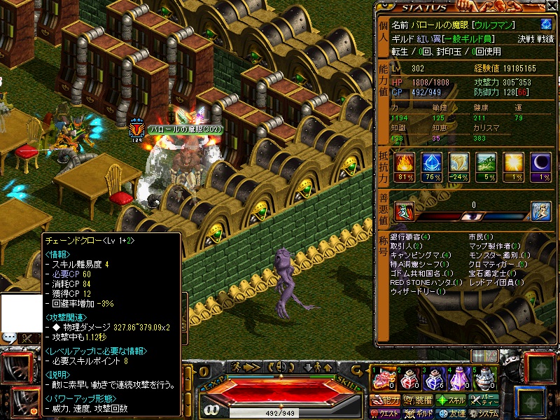 元メインだったWIZなんですが、最近復帰し始めてまぁ育ててるんですがチマチマとベウセルクとチェーンドクローを覚えるために秘密のクリア報酬使って前提スキルをクリアしつつ今日両方スキル1覚えて「ヤッター( ^ω^)!!、これで抵抗の高いファントムも楽に狩れるぞ!」と思い、早速ベルセルクを使いチェーンを左クリックに入れて狩り始めたのですが・・・・・え?これチェーン・・・・?ウルフクロー???と思いつつ・・・スキルを見てみると・・