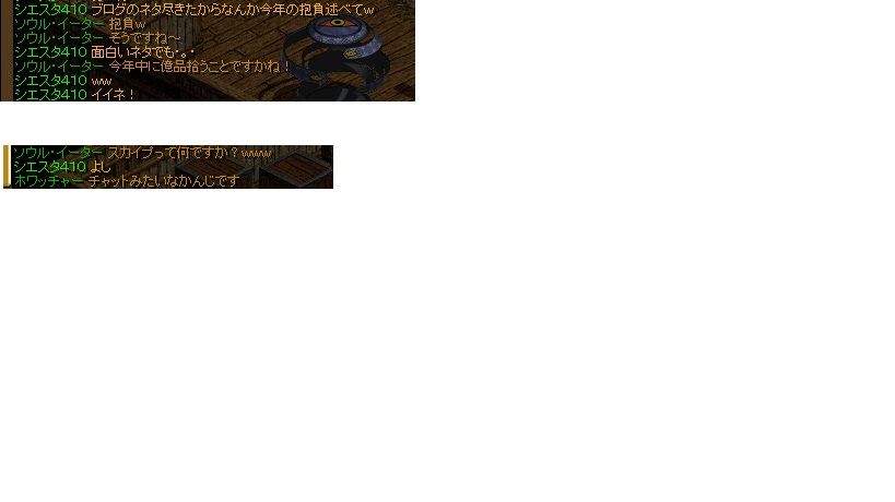 ・・・ネタがないので深夜にinしてたソウル・イーター(テイマー)を捕まえてネタを提供してもらいました'(*´Д`*)